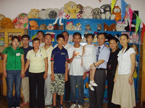 2005年8月9日,公司负责人刘艳红先生看望了北京通州关爱中心的孩子们,并给他们带去了部分图书与玩具。孩子们主动的为公司人员朗诵了[三字经],并表演了他们喜爱的几首歌曲。以下图为公司负责人与关爱中心院长常梦及她的孩子们在一起的情形。